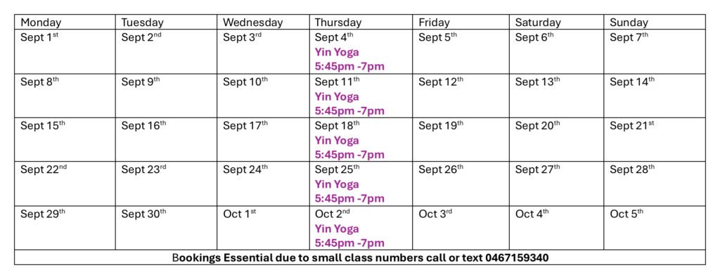 This two hour Yin Yoga session is designed to help you release stress and tension from both your body and mind. The gentle soothing tunes from our local musician will also help you to distract your mind away from your worries and bring your focus onto your practice. Some psycho-education will be weaved into the session to explain how yoga and meditative practices (Mindfulness) can benefit both your physical and mental health. Classes are limited to 6 students to provide a comfortable and intimate experience, with individual assistance when needed. Cost is $30 payable by cash or bank transfer at the event or through EventBrite. Bookings essential due to limited student numbers.